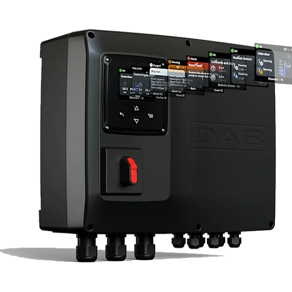 NgPanel DAB — это современная система автоматизации для насосных станций, предназначенная для управления и защиты одного или двух насосов в бытовых и коммерческих системах водоотведения и водоснабжения. Интеграция с Bluetooth, Wi‑Fi, DAB Virtual Cockpit + DConnect обеспечивает удобное дистанционное управление и контроль параметров в реальном времени.